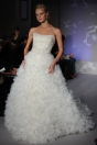 In traditional Lazaro style, his latest collection channels old-fashion glamour with vintage-inspired beading; romantic cap sleeves; scalloped sweetheart necklines; lovely tiered pleated tulle trains and lace appliqués.