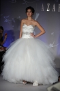 This season, Lazaro introduces sparkle net Charmeuse with embroidered Chantilly lace and hand-crafted, ornate beading. "I was very inspired to bring colour back into bridal this year," Lazaro says. "I included soft shades of sherbet, blush and antique in fabrics like silk satin, silk organza and tulle."